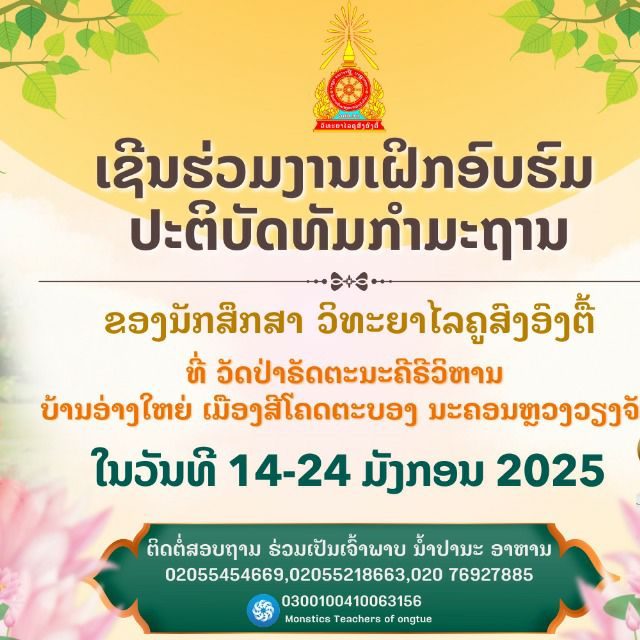 Aug212025 ຂໍເຊີນຍາດໂຍມ ຮ່ວມເປັນເຈົ້າພາບຖວາຍອາຫານ ນ້ຳປານະແດ່ພຣະສົງທີ່ເປັນນັກສຶກສາຄູສົງອົງຕື້ ທີ່ວັດປ່າບ້ານອ່າງໃຫຍ່ ປະຕິບັດທັມ ເປັນເວລາ10ມື້ ສາທຸ…14-24 ມັງກອນ 2025. ຂ່າວ ແລະ ແຈ້ອງການ, ເຄື່ອນໄຫວວຽກກິດຈະການນັກສຶກສາ ອ່ານຂໍ້ມູນເພີ່ມເຕີມ